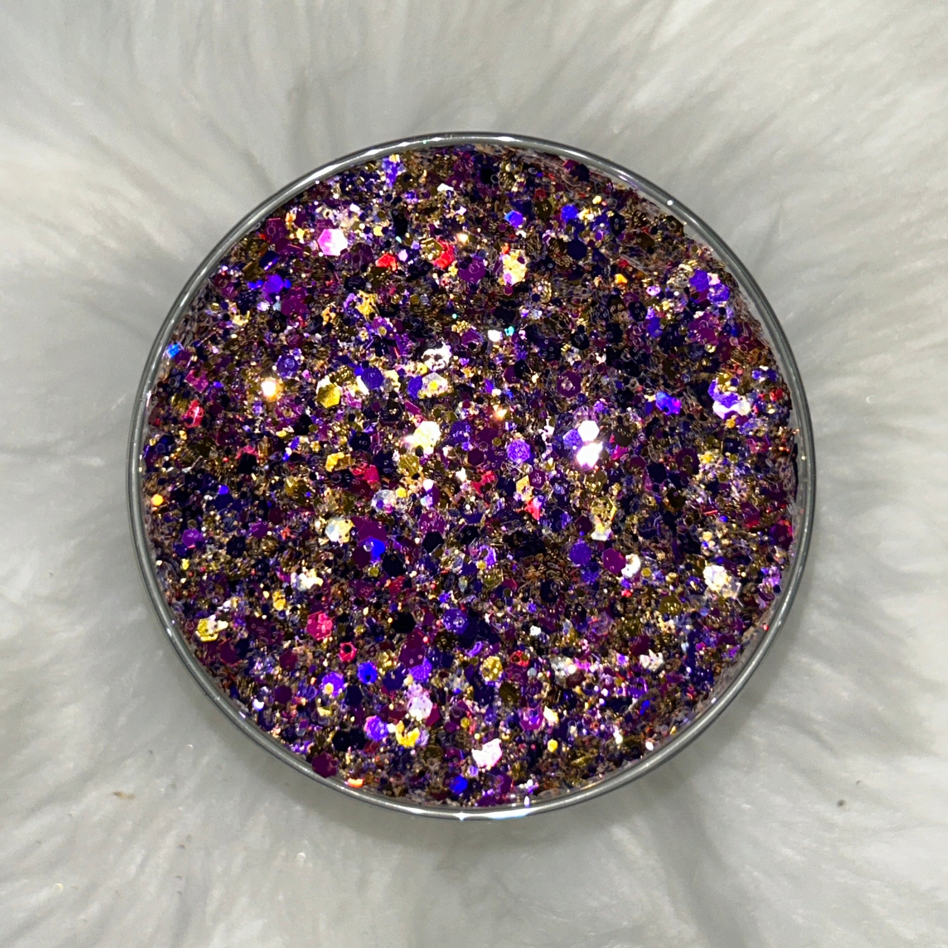 High-shine glitter in a durable container for easy storage and application
